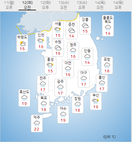 오늘 날씨 전국날씨 구름 많고 제주도 오후부터 비 예보 시민의소리